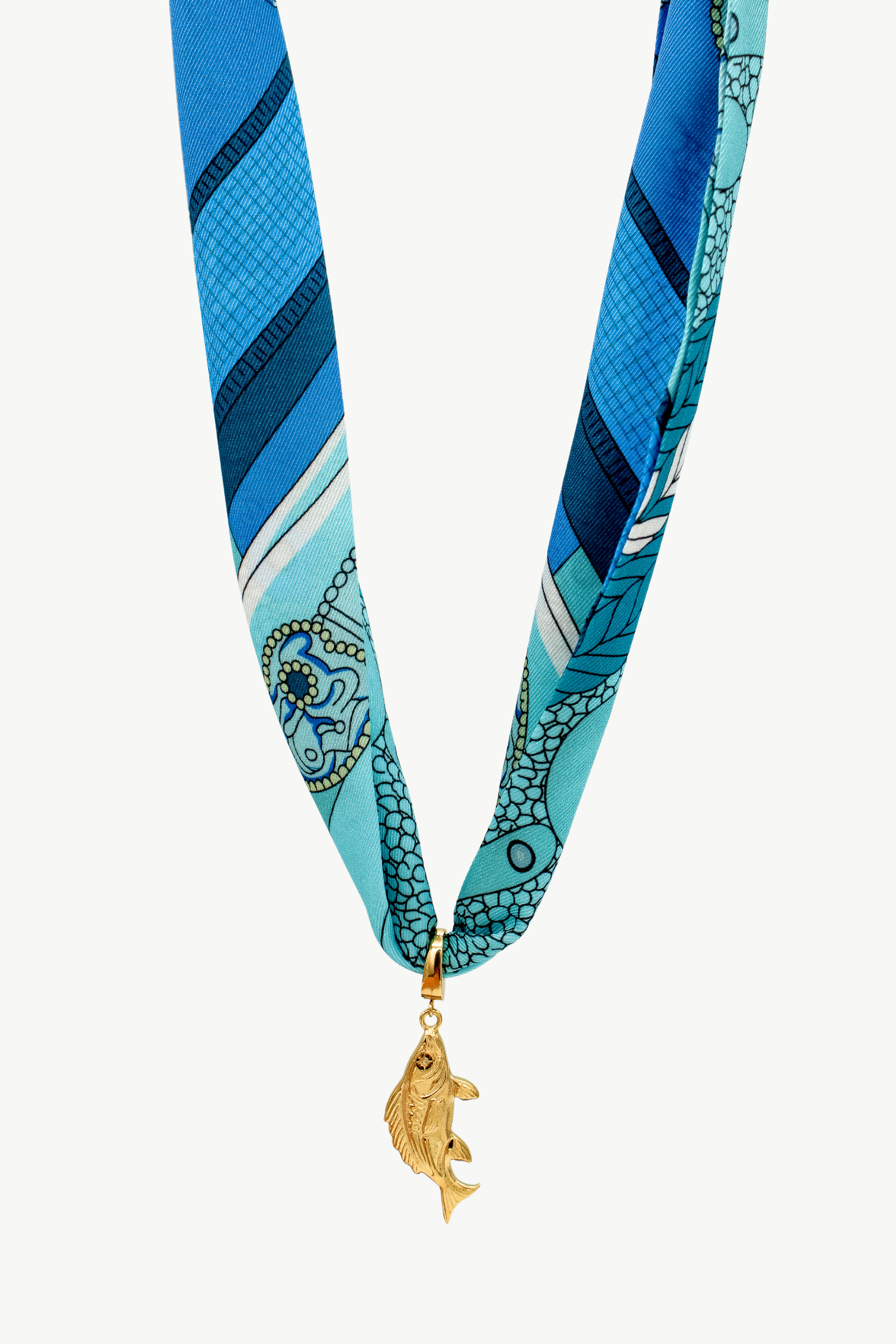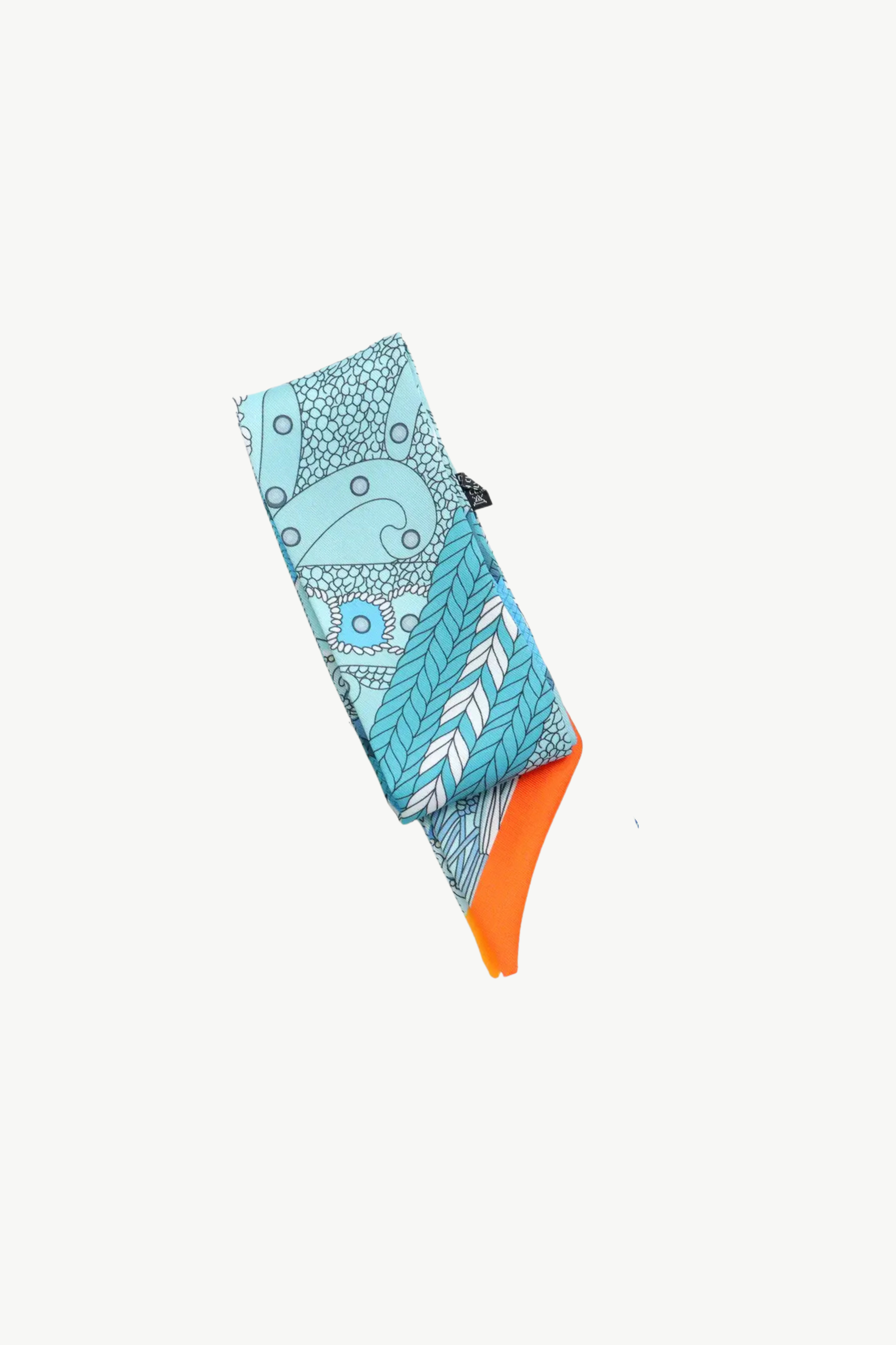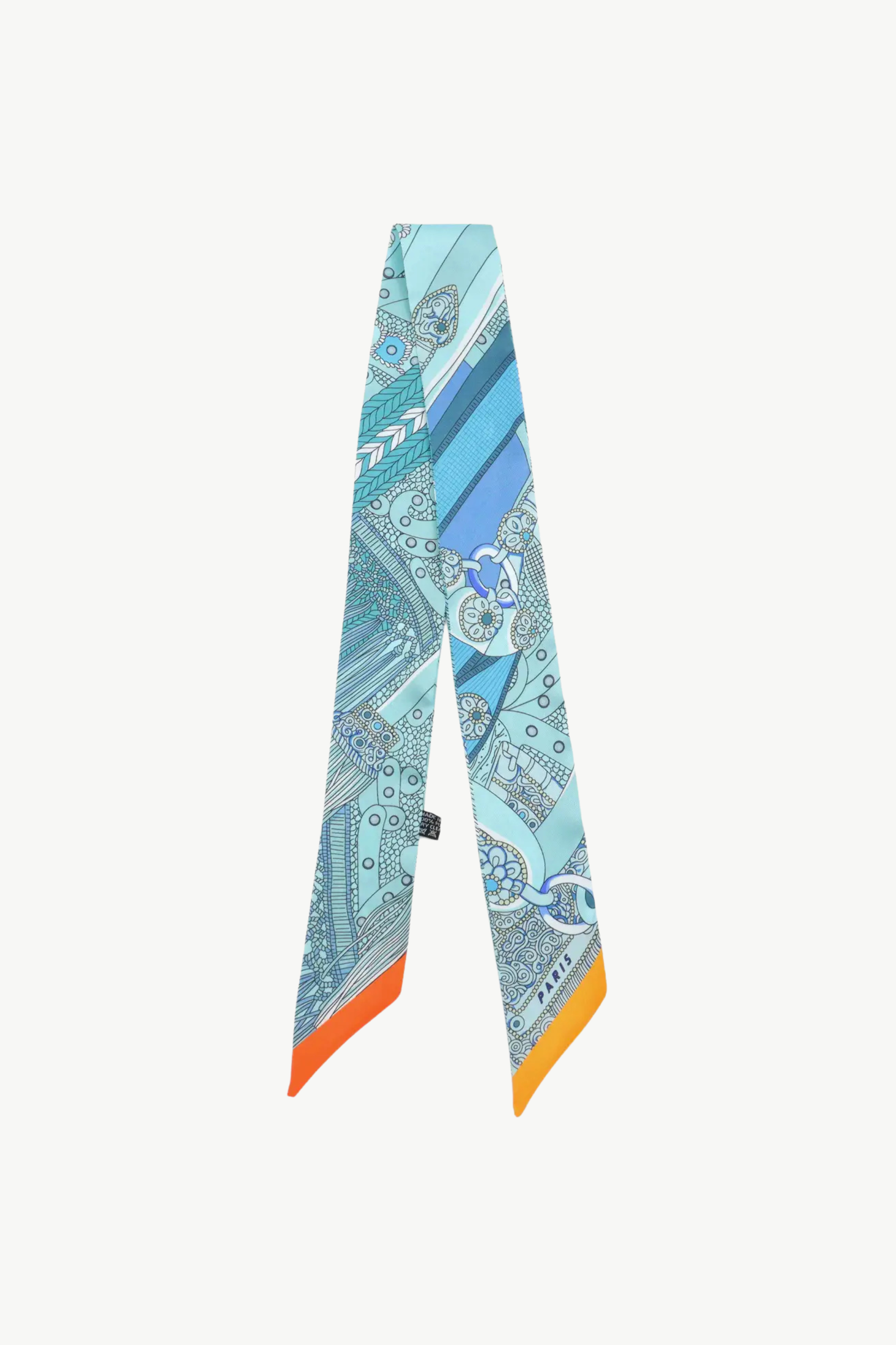 Blue as the Aegean, with a kiss of sunny yellow and a flirt of fiery orange, The santorini is basically a Greek island vacation you can wear. This silky stunner captures the charm of whitewashed walls, cobalt domes, and sunsets that make nyou gasp out loud (and spill your bouzo). This necklace is ready to sail from brunch to beach to moonlit dinner - no ferry ticket required. Wear it knotted or unknotted with you favorite charm or charms, and let The Santorini deal you a hand full of style. This narrow 35" long scarf necklace is made with lightweight emulsion silk and is soft and breathable.