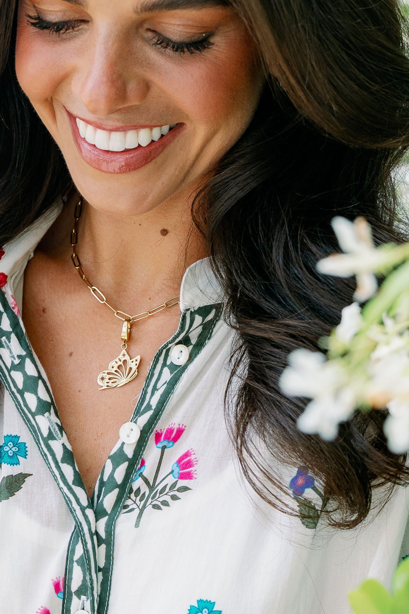 Símbolo de transformación, crecimiento y la perseverancia de los seres queridos, el dije de mariposa es un delicado recordatorio de que quienes apreciamos nunca nos abandonan del todo. Se dice que las mariposas aparecen cuando los ángeles están cerca , señal de que el amor continúa rodeándonos de las maneras más hermosas.