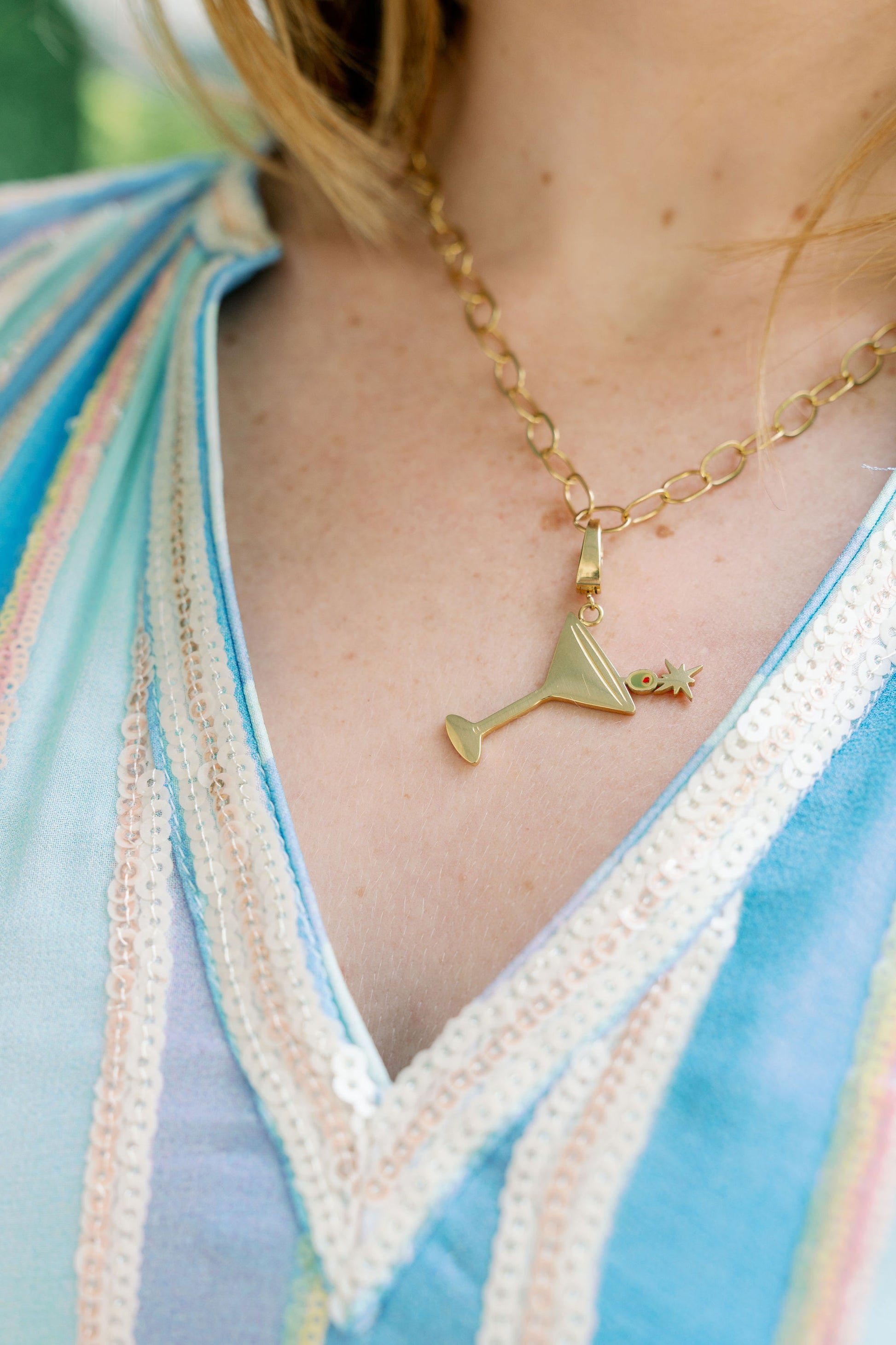 Algunas noches exigen moderación... y otras te dejan sin aliento, pero sea como sea, un martini en la mano (o en el cuello) siempre es una buena idea. Después de todo, como dijo Johnny Carson, la felicidad es encontrar dos aceitunas en tu martini cuando tienes hambre. Considera este amuleto tu segunda aceituna de la suerte: un pequeño capricho extra cuando más lo necesitas.