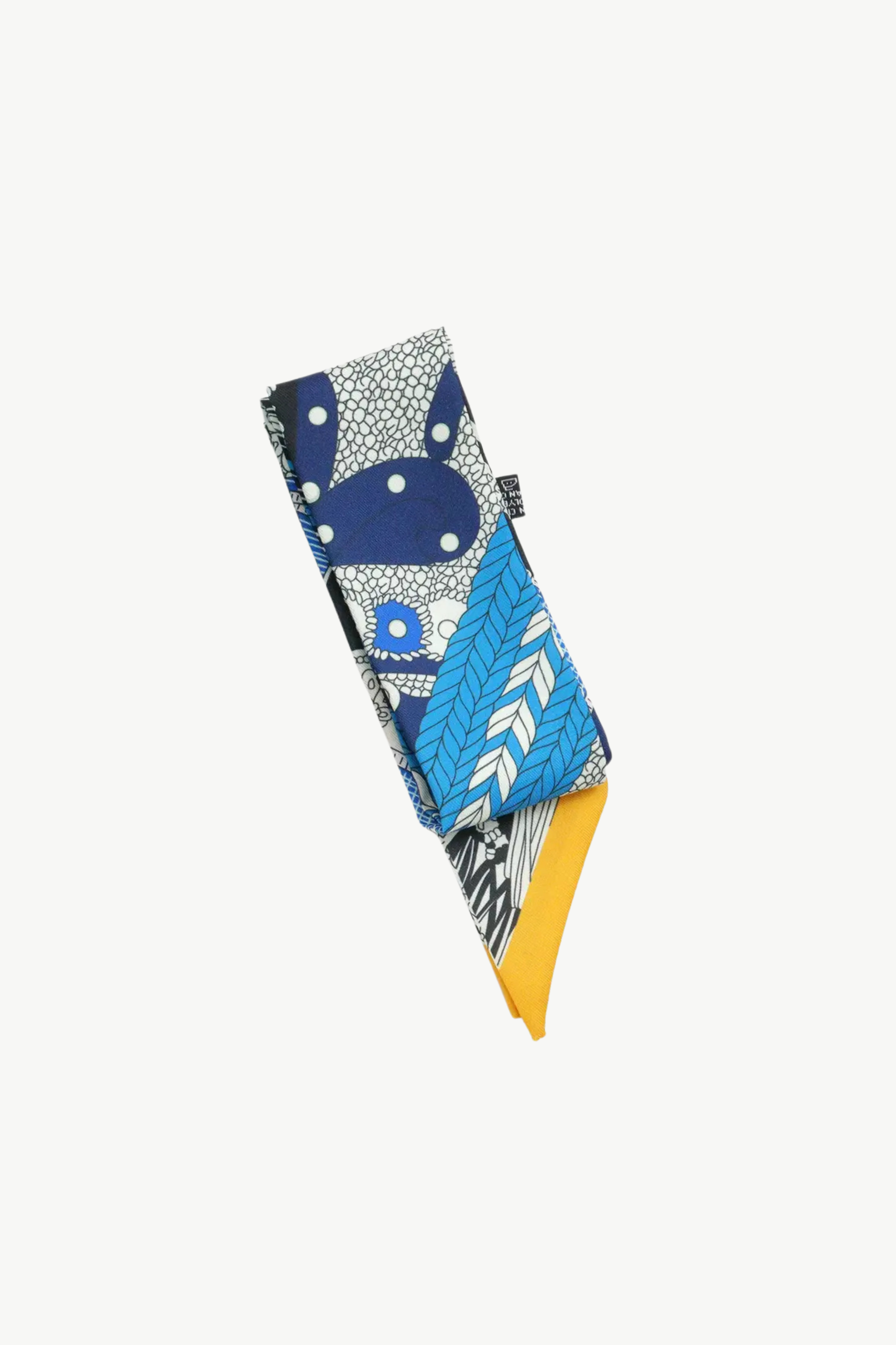 Deep navy, dazzling cobalt, and a splash of golden yellow - The Malaga is like a Spanish seaside evening, wrapped in silk.Think twinkling harbor lights reflecting off the Mediterranean, tapas plates you swore you wouldn't finish (but did), and a little flamenco flair for good measure. With the Malaga, every day feels like golden hour on the Costa del Sol. Wear it knotted or unknotted with you favorite charm or charms, and let The Malaga deal you a hand full of style. This narrow 35" long scarf necklace is made with lightweight emulsion silk and is soft and breathable.